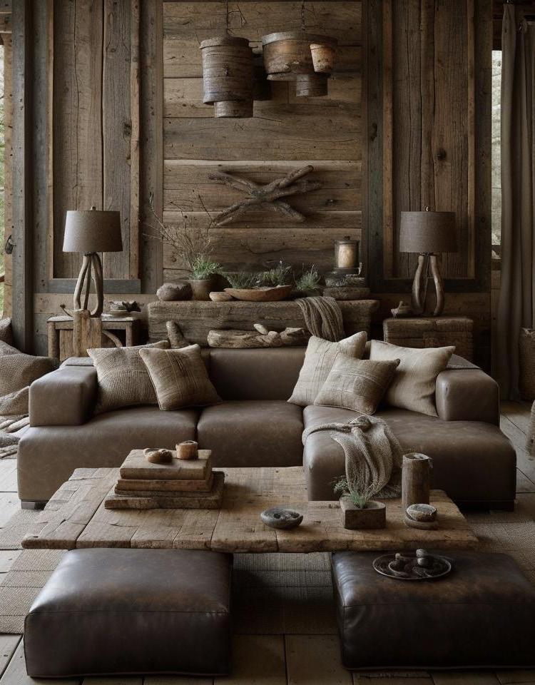 A homage to the natural world, this style harmonizes rugged woods and warm leathers, crafting an ambiance that whispers of mountAIn retreats and the timeless beauty of the outdoors.