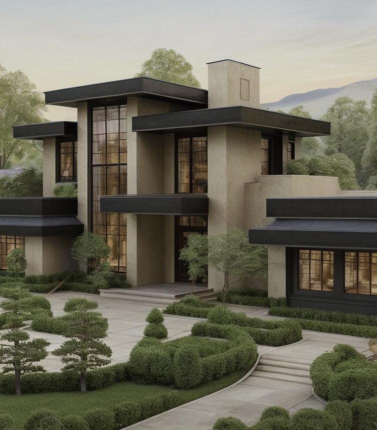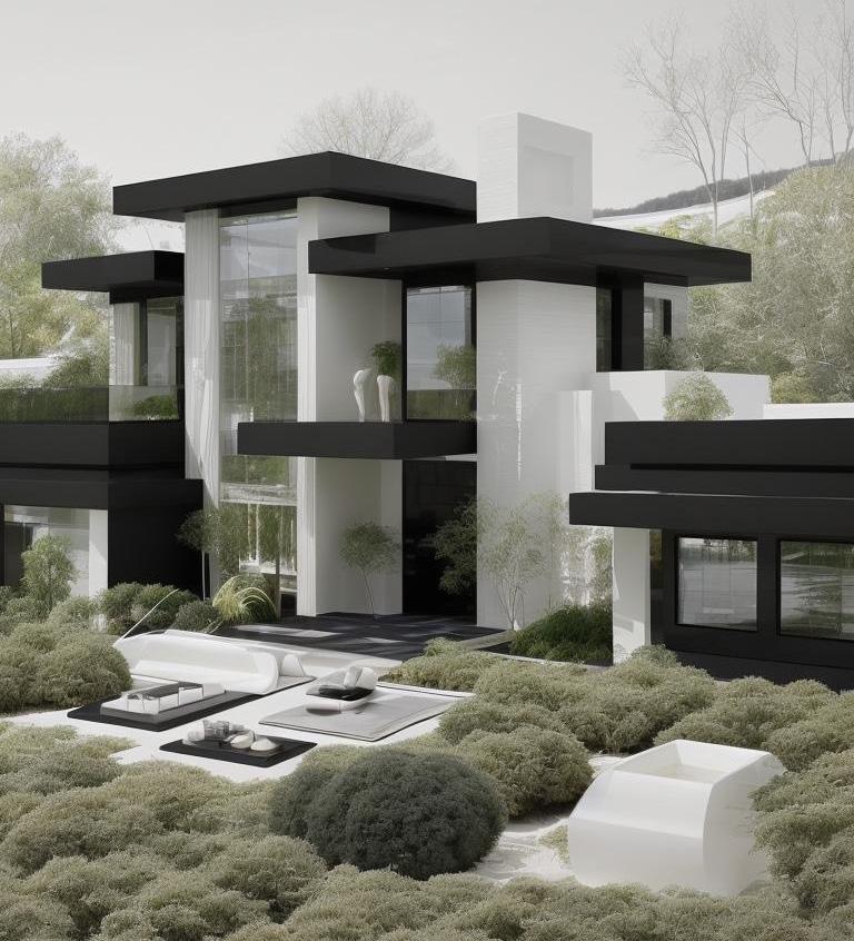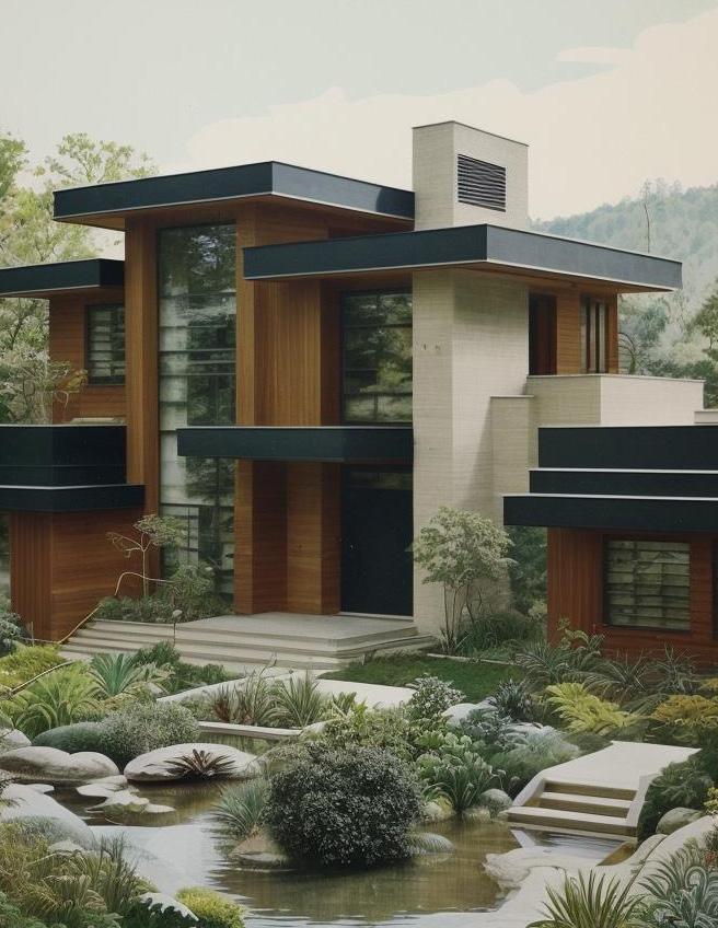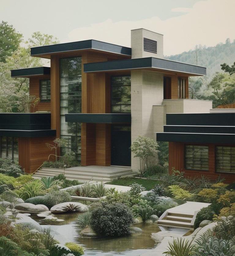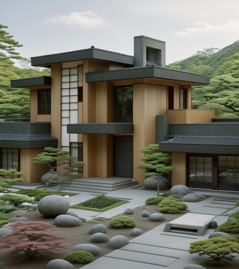 Created by DBM, this home embodies the tranquil essence of Japanese Zen design, artfully conceptualized by Modish.AI. The architecture harmonizes with nature, featuring clean lines, minimalist form, and the use of natural materials that speak to the serene aesthetics of a Zen sanctuary. The meticulously raked gravel and pristinely trimmed greenery of the garden encapsulate the calm and thoughtful spirit of the design, providing a meditative retreat that complements the home’s peaceful ambiance.