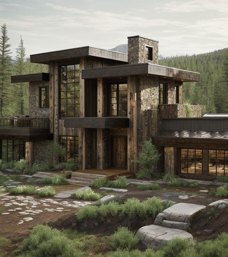 Created by DBM, this abode is a celebration of rustic design, where Modish.AI’s ingenuity meets the timeless allure of natural living. The home is a harmonious blend of rugged stone and aged timber, exuding a sense of enduring strength and warmth. With its thoughtful integration into the surrounding landscape, the design captures the soulful essence of a rustic retreat, providing a perfect sanctuary that feels both secluded and inviting.