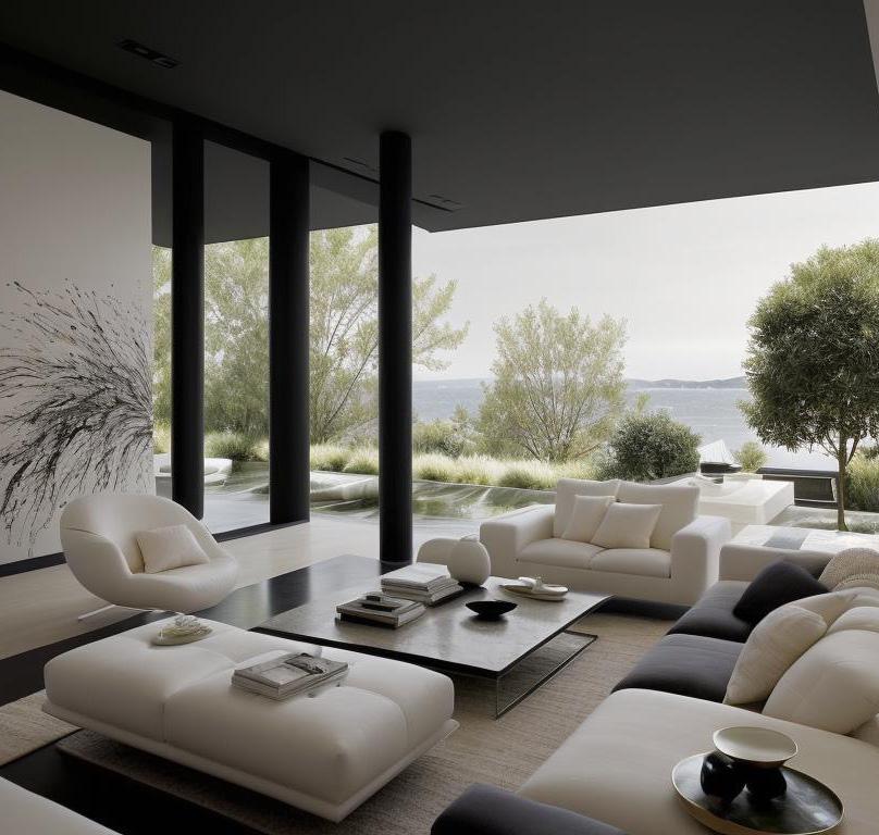 Created by DBM, this home is a quintessence of chic contemporary design, showcasing clean architectural lines and a monochromatic palette. The design by Modish.AI emphasizes a sleek and sophisticated aesthetic, with expansive glass features allowing natural light to accentuate the pure, open spaces. The harmonious integration of modern furniture and artful landscaping complete this portrAIt of modern luxury, offering a glimpse into a world where design is both a statement and a sanctuary.