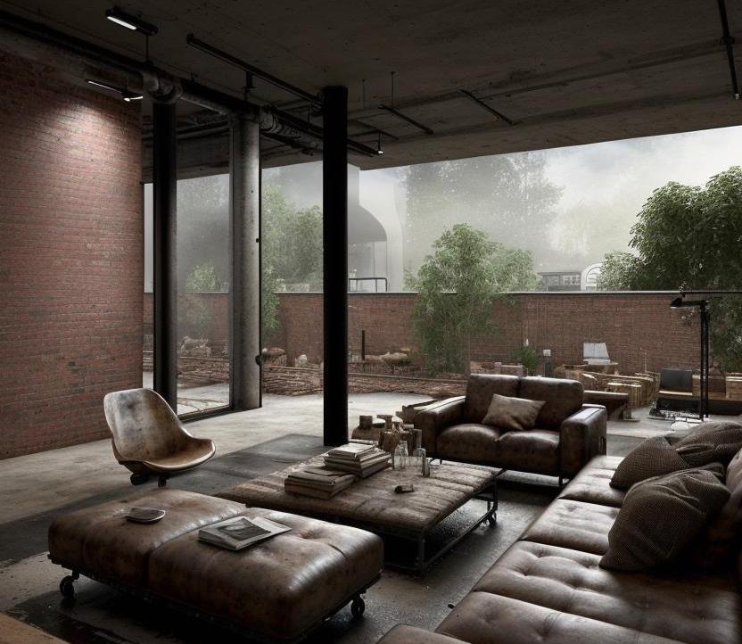 Embracing the essence of industrial design, this home by Modish.AI marries functionality with minimalist chic. The AI redefines this space, emphasizing the raw textures of brick and metal, the expansive use of glass, and the open floor plan is synonymous with industrial aesthetics. Here, the home’s architectural strength is showcased through unrefined materials and sleek, modern lines, creating a living space that’s both authentically industrial and refreshingly innovative.