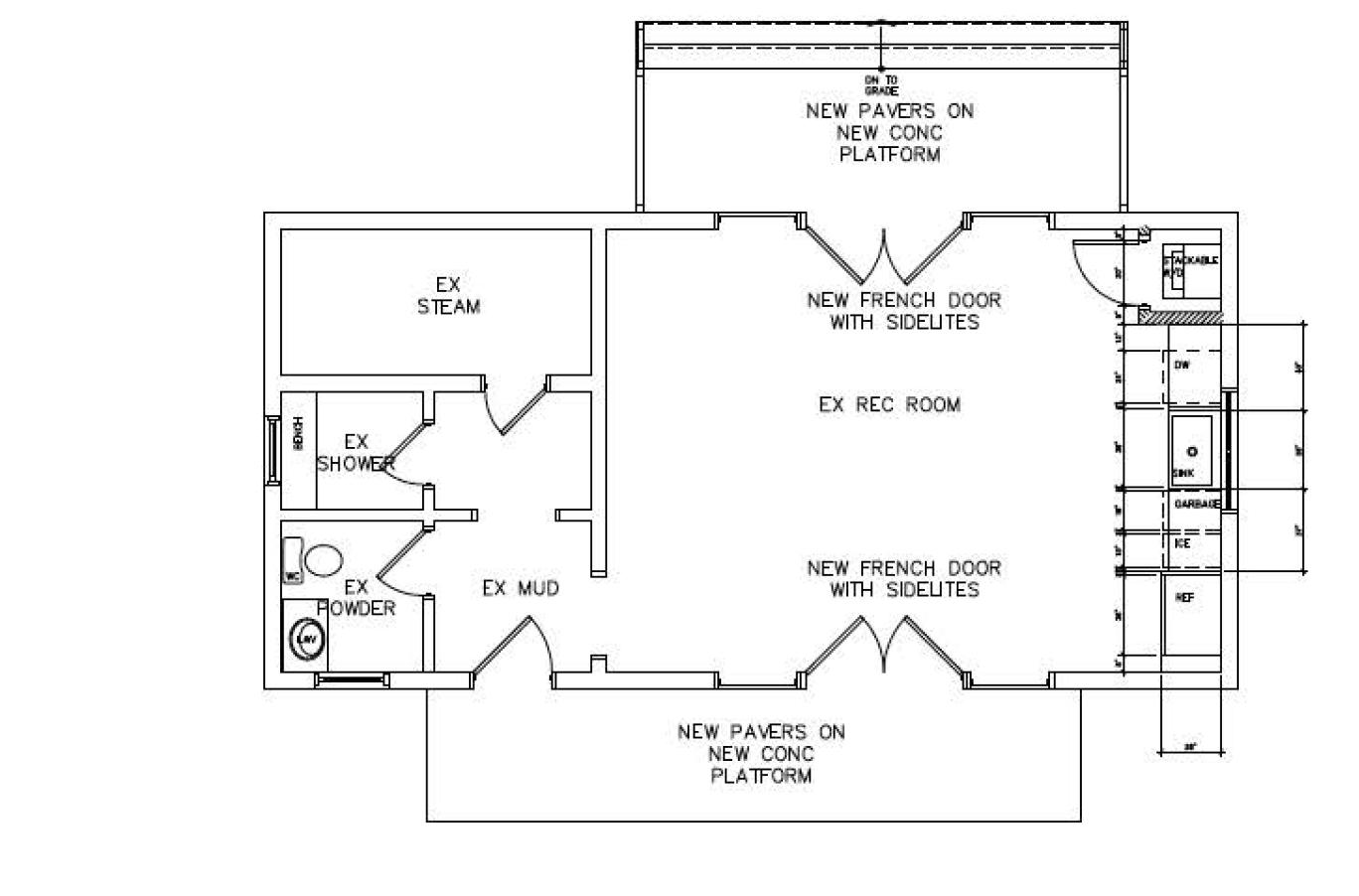 The high ceilings, large windows and light make this lower level unique. The lower level design embodies a minimalist modern style with a nod to the classic elements of the house. Each room embraces a warm palette with wood floors, limestone details, and layered natural materials and textures.