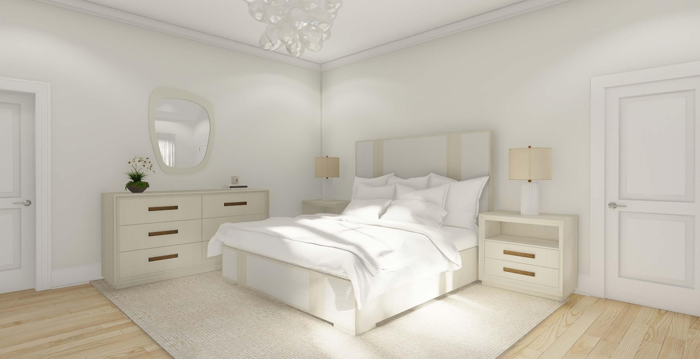 The Junior Primary Suite is bright and spacious with a large walkin closet and en-suite bathroom, large shower, double vanity and a free standing soaking tub.