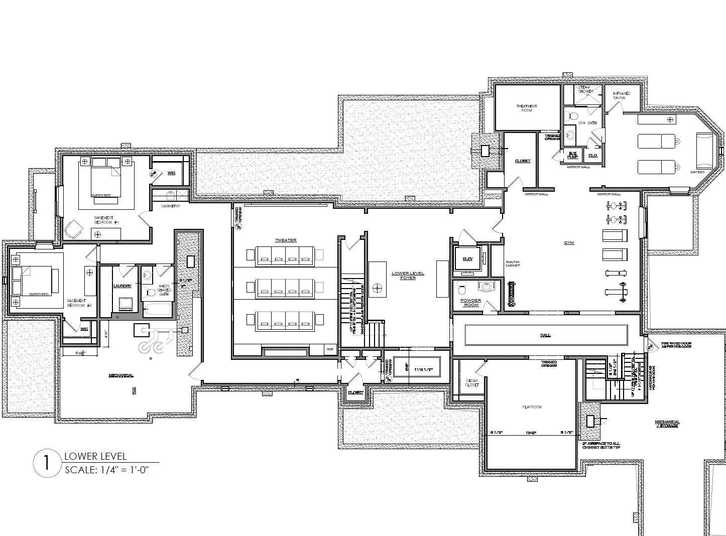 The lower level offer a natural flow through 5,632 square-feet of pure living space including two bedrooms, three full baths, powder room, gym, spa, sauna, theater and laundry.