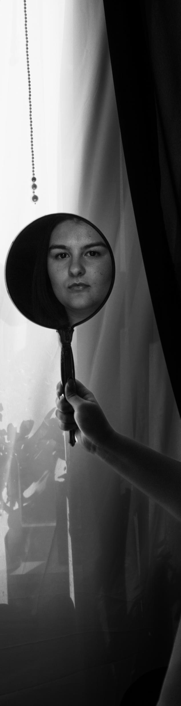 “Yes?” he replied. In the mirror, his eyes flickered, like a film catching up to itself. The sensation of being watched intensified, as if something else was peering out from behind them.