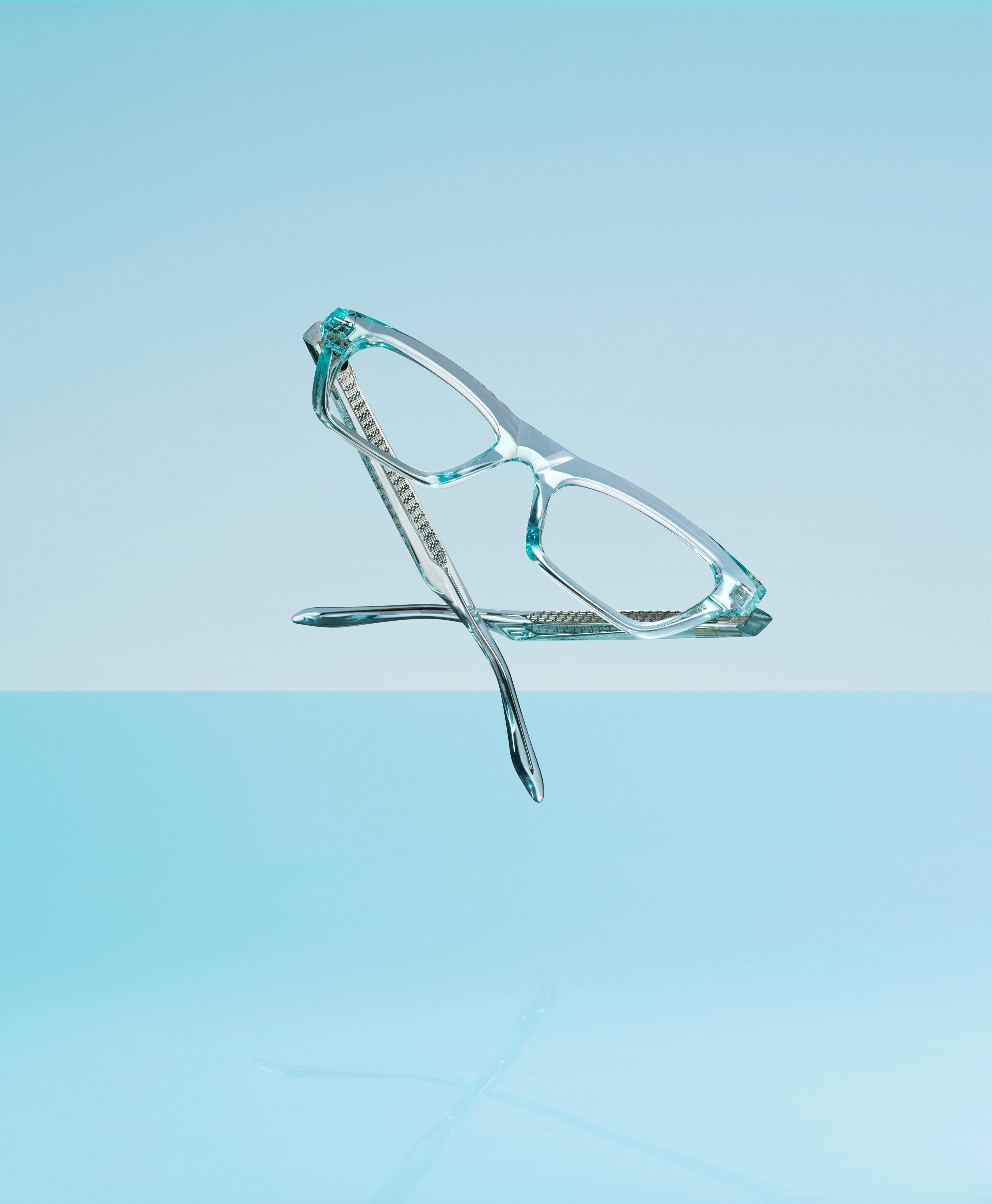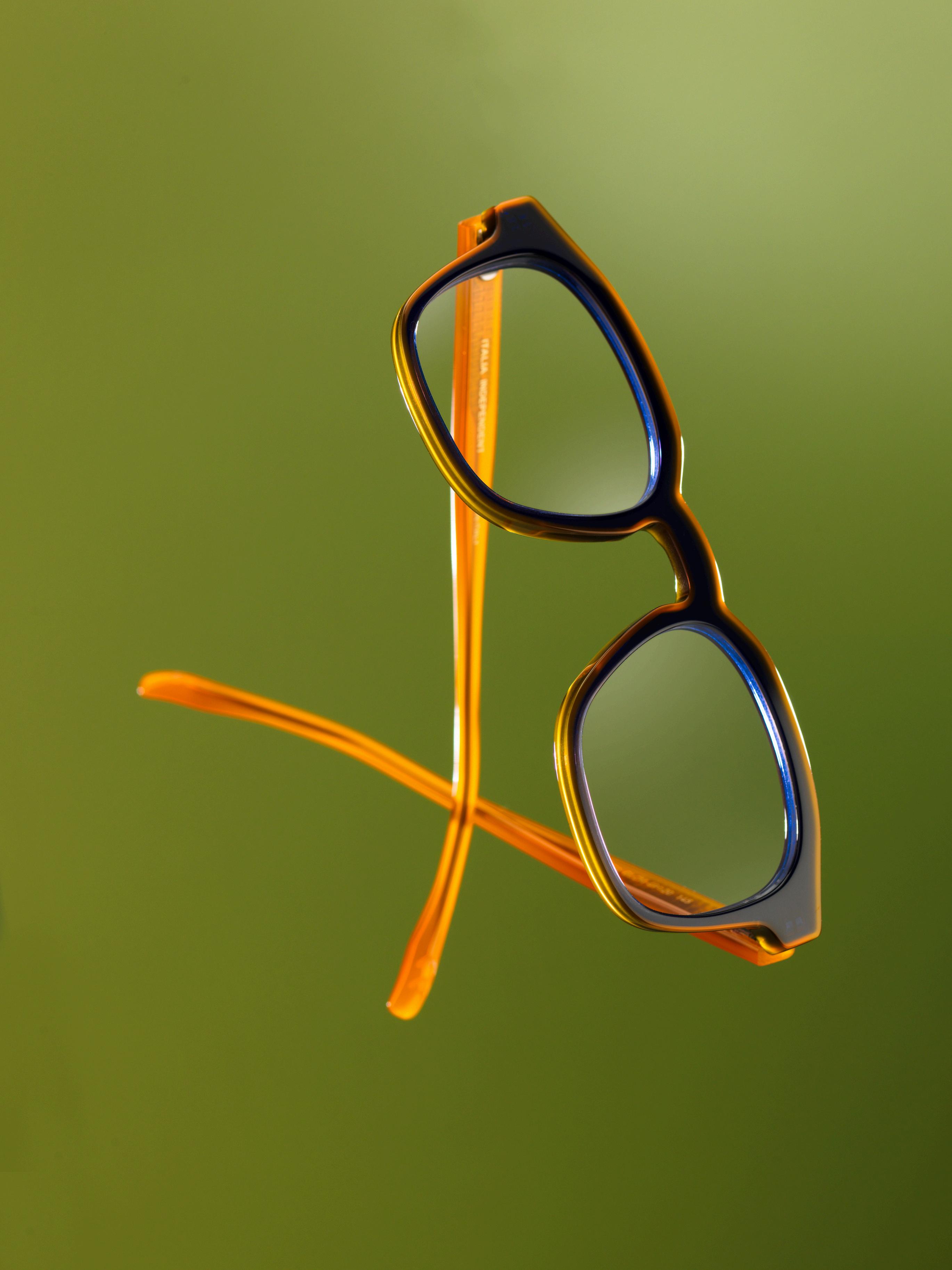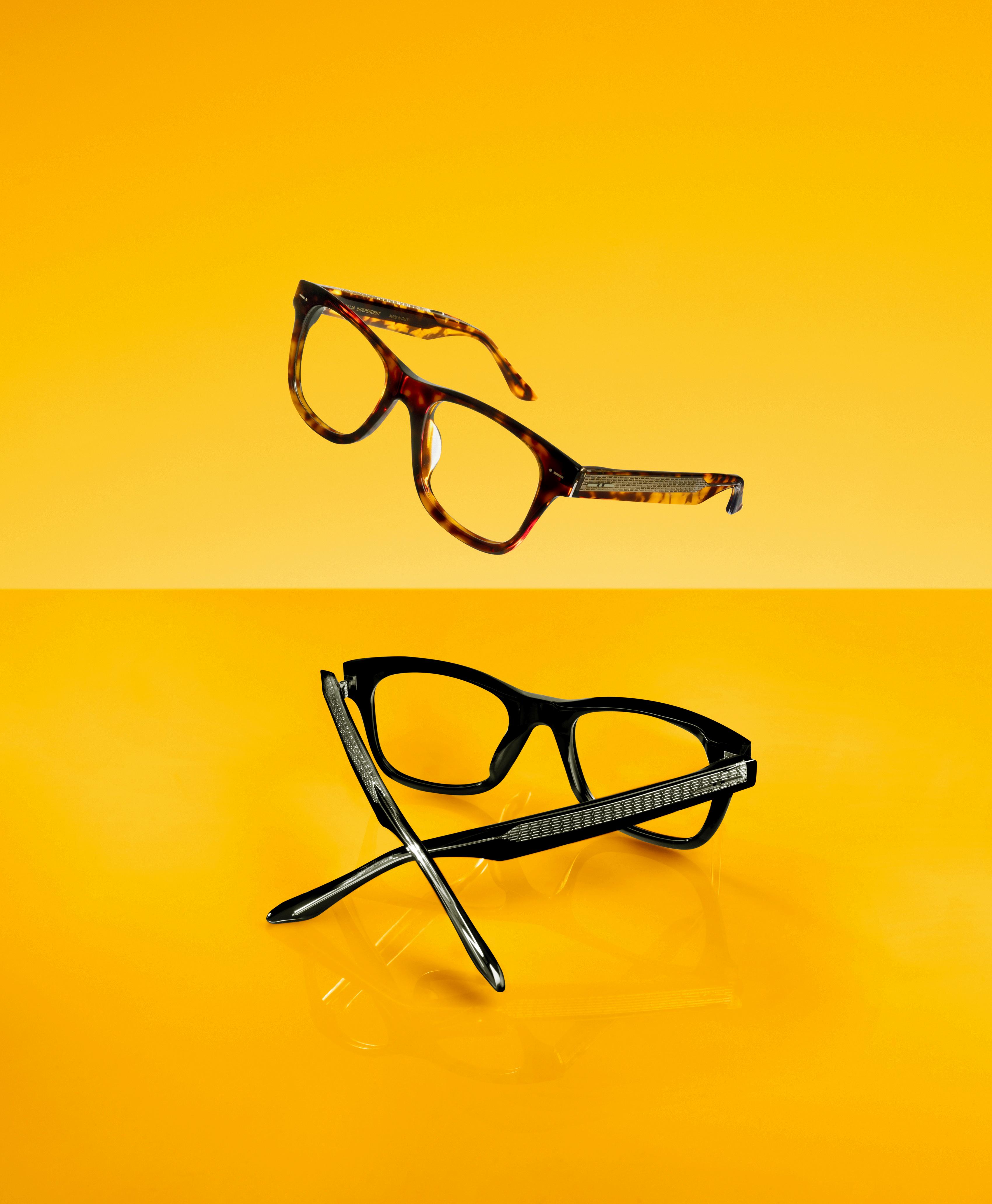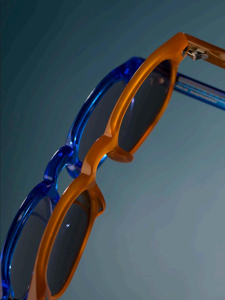 Every frame combines two colors creating exciting effects through outlining the front and emphasising its shape. At times with extravagant combinations like pink & blue, at times slighter and more refined like black & blue or burgundy & purple.