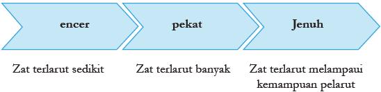 Larutan memiliki konsentrasi tertentu berdasarkan jumlah zat terlarut yang ditambahkan dalam zat pelarut dengan volume tertentu. Suatu larutan dikatakan larutan encer jika jumlah zat terlarutnya sedikit. Jika zat terlarut terus ditambahkan, larutan ini menjadi larutan pekat. Jika zat terlarut terus menerus ditambahkan hingga titik tertentu sehingga pelarut tidak lagi dapat melarutkannya, larutan ini disebut sebagai larutan jenuh. Contoh larutan jenuh adalah