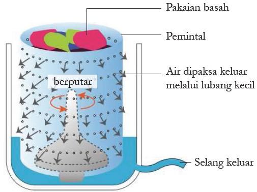 Gambar 5.28 Tabung dalam mesin cuci menggunakan prinsip sentrifugasi.