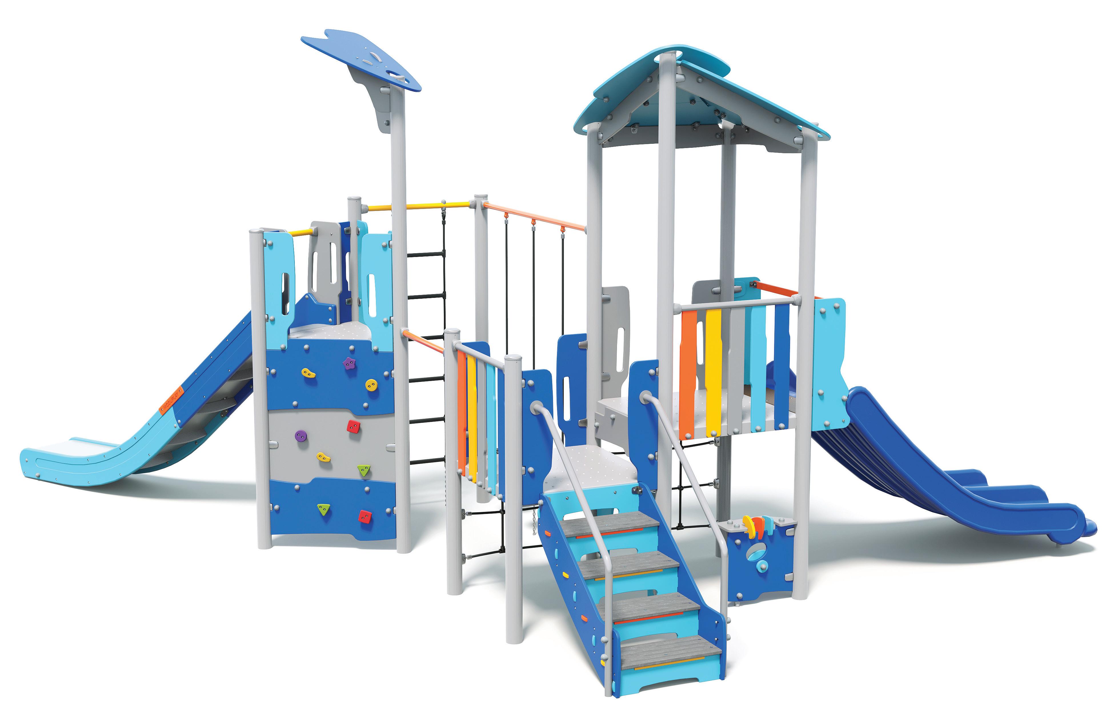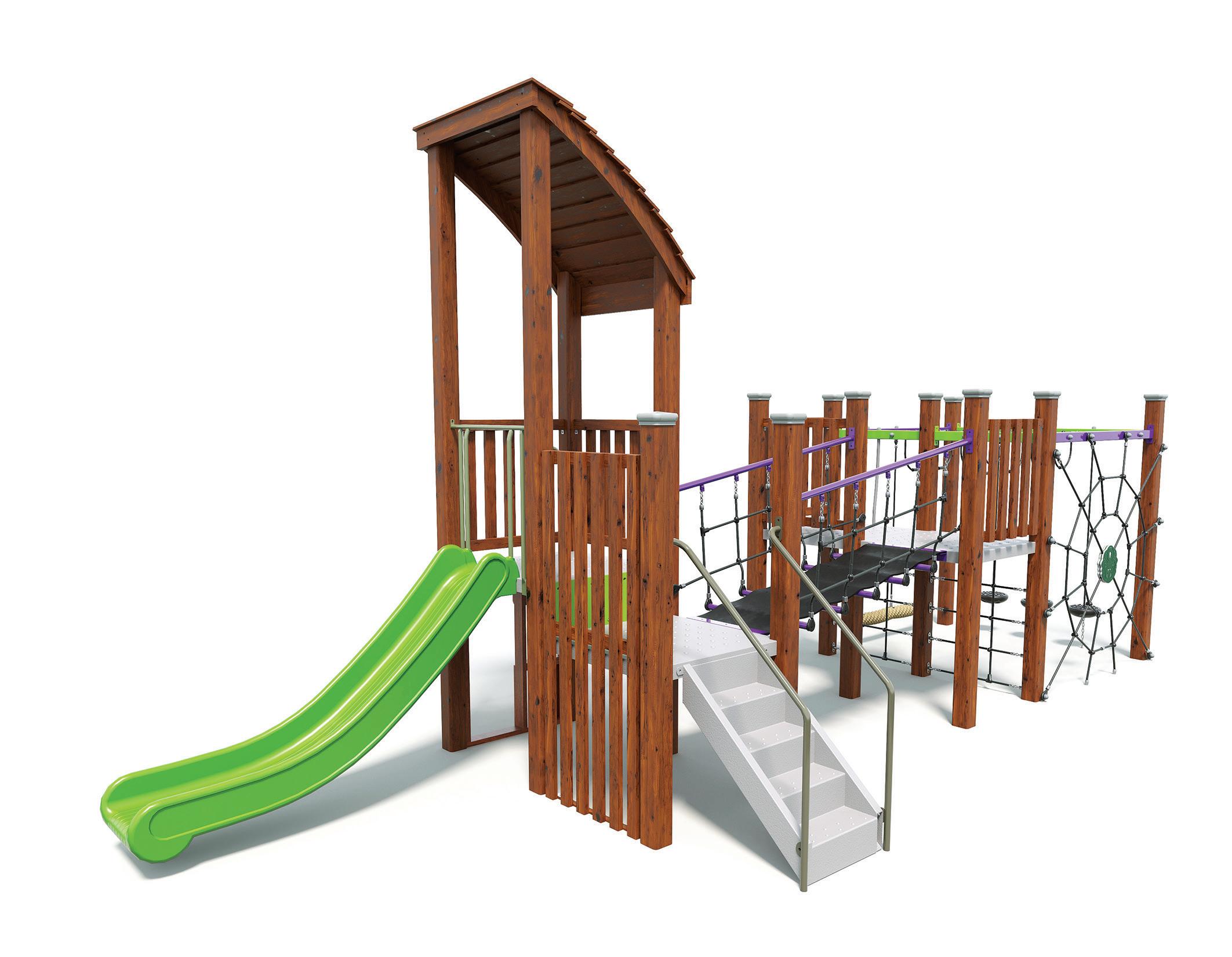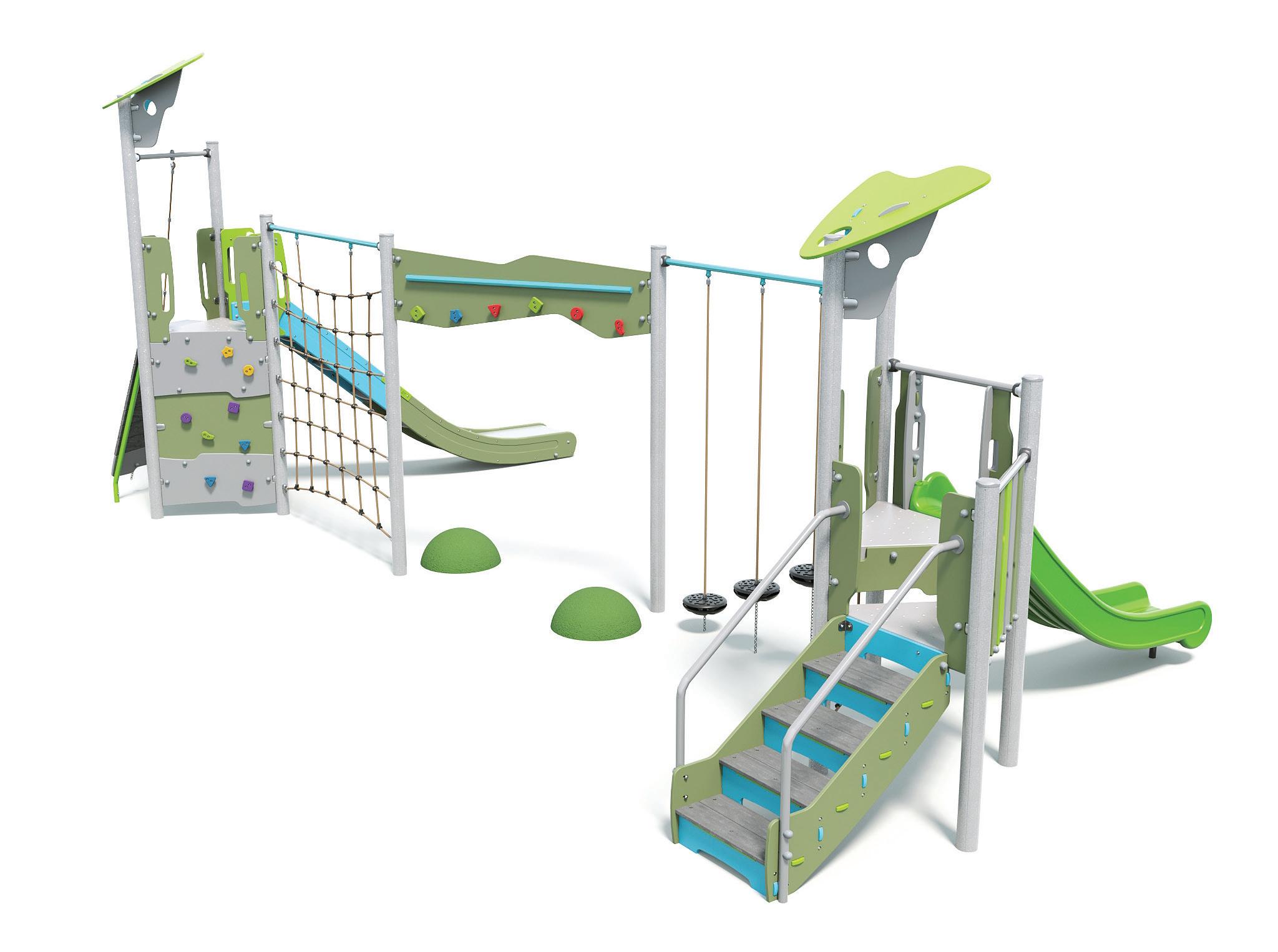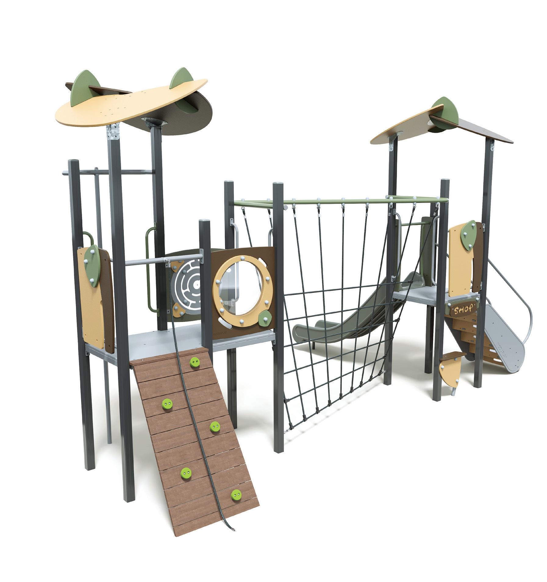 Versatile structures that maximise play value by combining multiple activities into continuous play, building strength, agility, teamwork, and gross motor skills.
