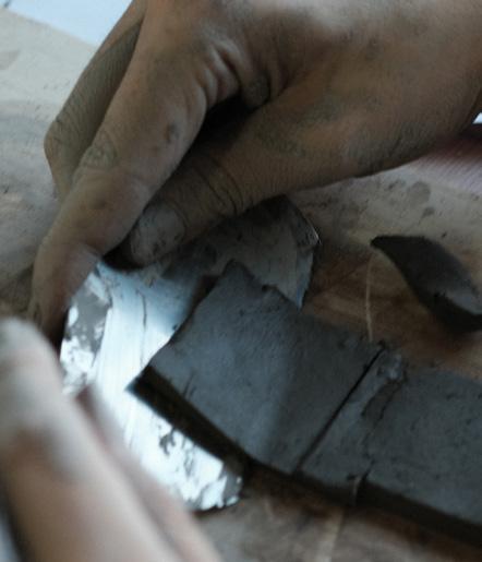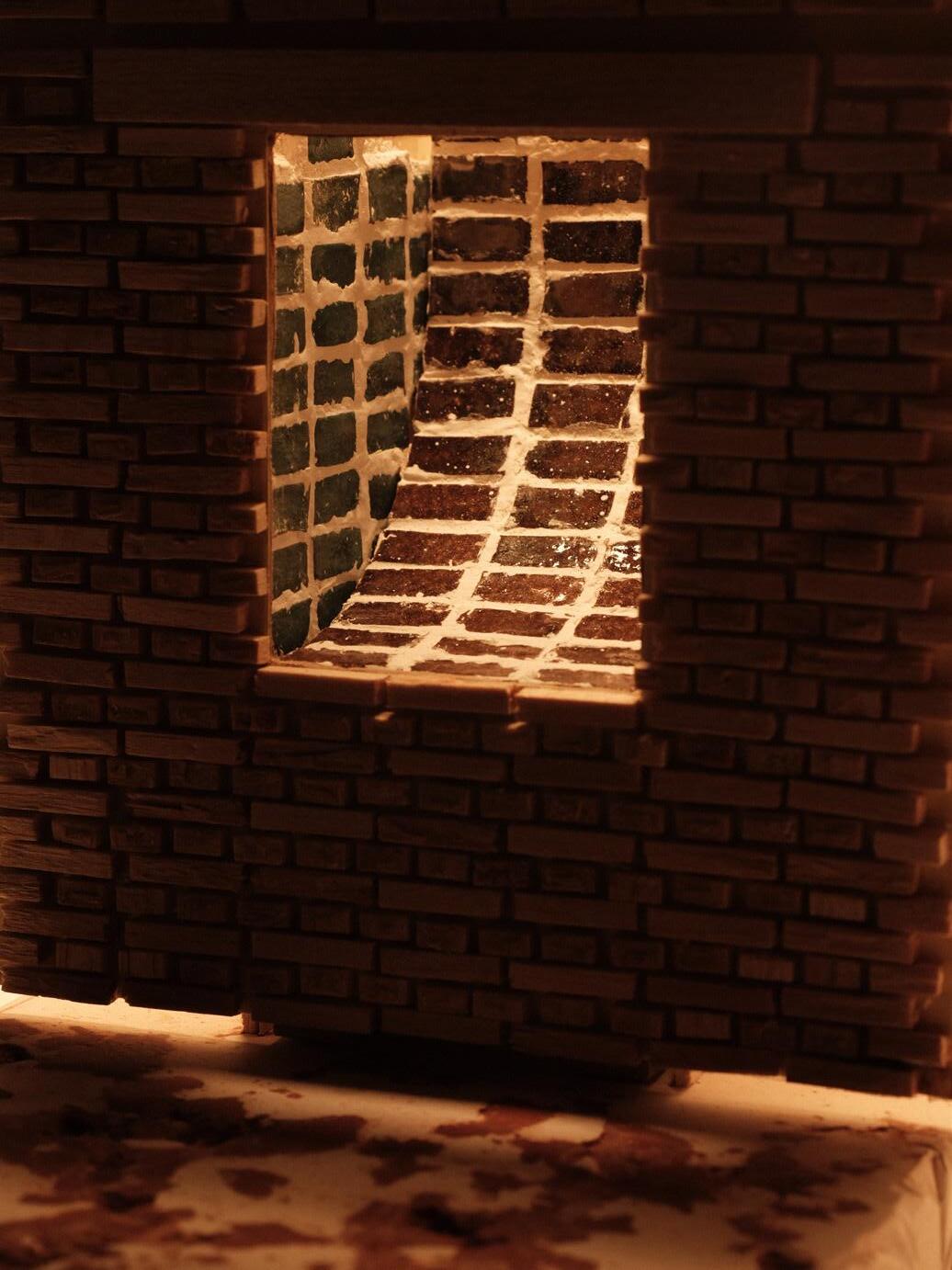 Experimenting with tiles and glazing. Experimenting with different glazing techniques helped me develop the window fragment where thicker layers of glazing that makes the surface shine like metal were used to bring the light in through the skylight, and fewer layered glazed tiles were used to let the light into the internal space.