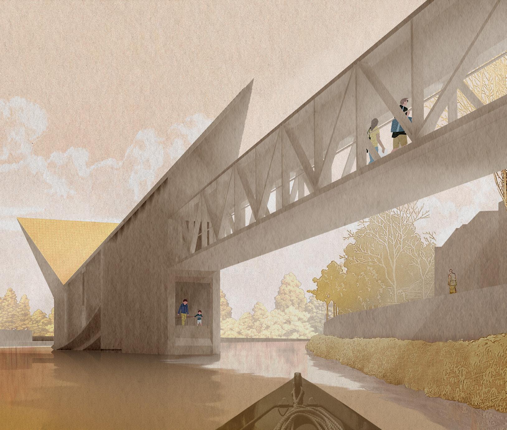 Under the bridge, there will be a gallery space, celebrating the artwork inside with the light coming in.