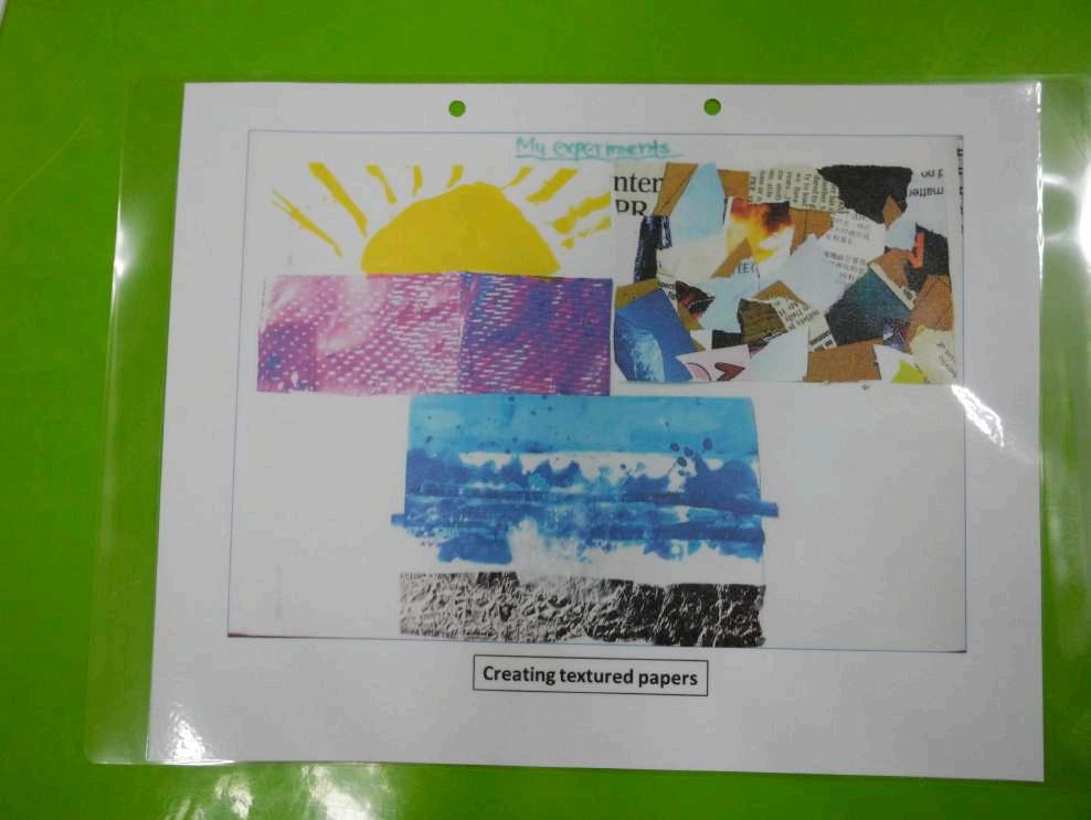 Students had to match each textured paper to one of the seven techniques introduced to them (cutting slits, quilling, tearing and pasting, folding, crumpling, piercing and weaving).