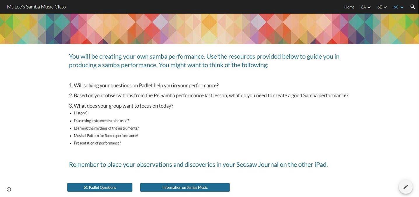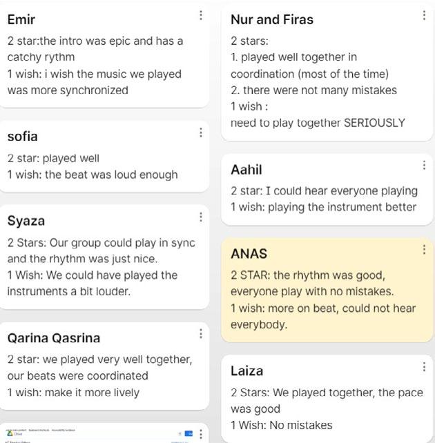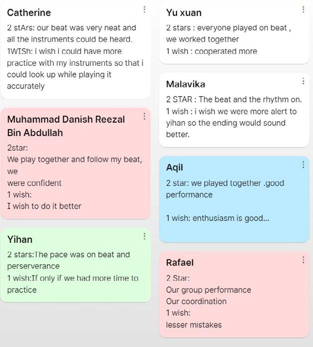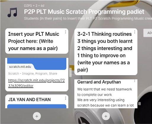 The students then did their reflections in Padlet. They shared what they had learnt and how Scratch programming helped them to develop and share their musical ideas.