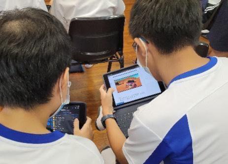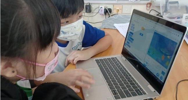 | Students pair up to sing their song creation into Scratch –a coding software with voice and animation function