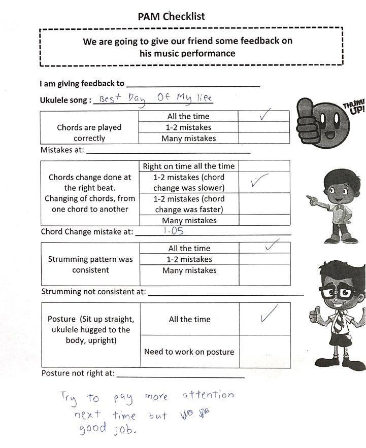b) In SLS lessons, music teachers worked together to intentionally design an inclusive lesson experience for students, reducing barriers of learning by giving students the autonomy to choose their lyrics through multiple choice questions. Music teachers prepared four-line lyrics in multiple choice format in order to ease the process for students with SEN.