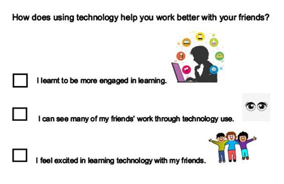 Following UDL guidelines (multiple means of expressions), students got to communicate their musical ideas and decisions using technology. They paired up to sing their song creation into Scratch and enjoyed expressing themselves with their voices together with their friends. Students with SEN also had the opportunity to express themselves through the use of voice recording (for their song creation) as they discussed, collaborated, and worked with their peers. All the students reflected and responded positively to the survey using technology. Overall, it can be seen that employing technology enhanced the activities for students in the inclusive class; their social interactions and participation were significantly improved.