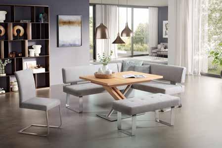 Moderne ECKBANK , Stoffbezug grau in Lederoptik ca. 203x156 cm. Hockerbank , B: ca. 113 cm *statt 627.- 319.- Schwingstuhl *statt 618.je 319.- Funktionstisch in Kernbuche furniert lackiert B/H/T ca. 130(178) x75x90 cm*statt 1.723.- 899.- Andere Farben und Zusammenstellungen zum individuellen Preis erhältlich.