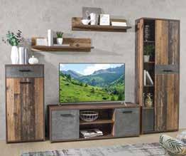 WOHNWAND, Viking Eiche Dekor/graphit, mit Beleuchtung und Softclose, B/H/T: ca. 322x202x44 cm.