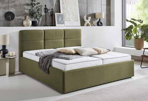 Modernes BOXSPRINGBETT, mit Stoffbezug in grün, inkl. 5-Zonen-Taschenfederkern-Matratze, LF ca. 160x200 cm. LF ca. 180x200 cm 1.599.- Lampen, Kissen, Nachtkonsolen und Plaid gegen Mehrpreis. Andere Größen, Farben und Zusammenstellungen zum individuellen Preis erhältlich.