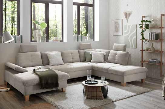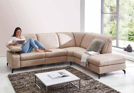 Moderne POLSTERECKE, in Stoff Lederoptik sand, ca. 280x245 cm, Metallfuß schwarz, Sitz: Purschaum. Höhenverstellbare Armlehne, Kopfteilverstellung, TV-Funktion motorisch, Tischfunktion mit Holzablage, Relaxfunktion motorisch bei Longchair, Sitz: Federkern, Rücken echt, Schubkasten, Kissen, andere Farben und Zusammenstellungen zum individuellen Preis erhältlich.