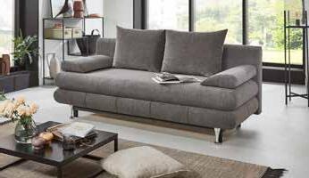 Moderne WOHNLANDSCHAFT, Stoffbezug stone, Metalfüße schwarz matt, inkl. Bettfunktion und Stauraum, Sitztiefenverstellung und Hocker, Stellmass. ca. 171x337x215 cm. Wien 10 *statt 6.437.- 2.998,-