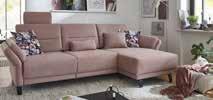 Moderne POLSTERECKE, Stoffbezug rose, Metallfuß schwarz, Sitz: Boxspring, mit Armteilverstellung, inkl. motorischer Fußauszug und Zierkissen. Stellmass: ca. 275x160 cm. Wien 10,12,22 *statt 7.371.- 2.499,-