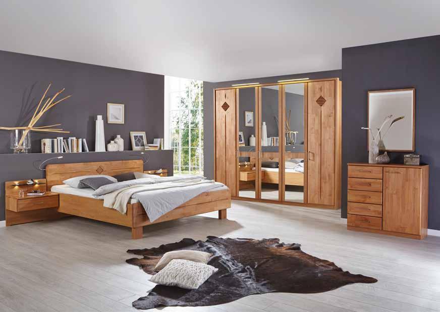 Modernes Schlafzimmer in Erle teilmassiv best. aus: Schrank, 5-trg. mit 3 Spiegeltüren B/H/T: ca. 250x216x58 cm *statt 1.653.- 799.- BETT in Liegefläche ca. 180x200 cm und Nachtkonsolenpaar *statt 432.- 229.- Paneele, Passepartout, Beleuchtung und Beimöbel gegen Mehrpreis. Andere Größen und Zusammenstellungen zum individuellen Preis erhältlich.