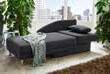 ECKGARNITUR, Bezug anthrazit, Schenkelmaß ca. 243x155 cm, B/H/T: ca. 243x81x88 cm, Liegefläche ca. 145x195 cm, Federkernpolsterung im Sitz, inkl. Schlaffunktion und Bettkasten.