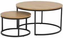 2-SATZ COUCHTISCH, Wildeiche Dekor, Gestell schwarz matt, Ø ca. 80 cm, H: 44 cm und Ø ca. 50 cm, H: 33 cm.