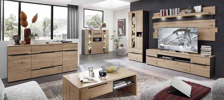 WOHNWAND, Artisan Eiche Dekor/graphit, inkl. LED-Beleuchtung, mit Softclose, B/H/T: ca. 287x197x47 cm. Andere Zusammenstellungen zum individuellen Preis erhältlich.