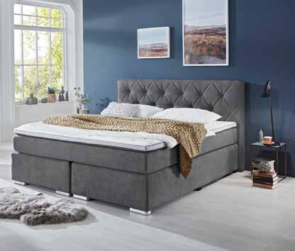 BOXSPRINGBETT, Bezug grau, B/H/T: ca. 197x107x220 cm, Liegefläche ca. 180x200 cm, inkl. Topper, ohne Plaid.