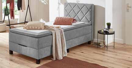 BOXSPRINGBETT, Bezug hellgrau, B/H/T: ca. 120x110x211 cm, Liegefläche ca. 120x200 cm, inkl. Schaum-Topper. Ohne Plaid, Bettzeug und Kissen.