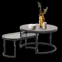 2-SATZ COUCHTISCH, Gestell Metall pulverbeschichtet rau schwarz, Platte Rauchglas gebeizt/ Marmor Print schwarz, B/H/T: ca. 70x42x70 cm.