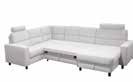 Moderne WOHNLANDSCHAFT, Stoffbezug silber, ca. 322x275 cm, inkl. 5 Schwenkrücken und Nierenkissen. Sitzkomfort: hochwertiger BoxspringFederkern, Arm- und Kopfteilverstellung, Bettkasten, Bettfunktion, andere Farben und Zusammenstellungen zum individuellen Preis erhältlich.
