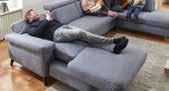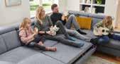 Moderne Garnitur, Stoffbezug steel, Fuß schwarz, Sitz: Federkern, inkl. Kopfteilverstellung. 2,5 SOFA, B: ca. 188 cm, Recamiere, B: ca. 213 cm *statt 2.218.- 999.Kissen, Armteilverstellung, WallAway motorisch, Vorziehbank motorisch, andere Farben und Zusammenstellungen zum individuellen Preis erhältlich.