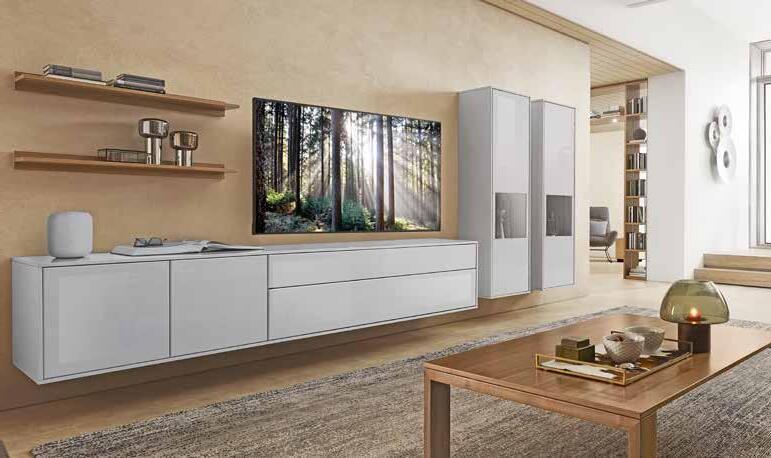 Ein vielfältiges Planungssystem, mit dem sich ganz einfach die eigenen Traummöbel zusammenstellen lassen. Grifflose Fronten, ein dünner Rahmen und weitere stilgebende Designmerkmale unterstützen eine avantgardistische Einrichtung mit puristischem Charakter. Vom großzügigen Wohnbereich, über das eigene Heimkino und die umfangreiche Bibliothek, bis zum geschmackvollen Ankleidezimmer – dieses Programm bietet alles aus einem Guss.
