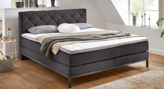 BOXSPRINGBETT, Stoffbezug in anthrazit, Metallrahmen grau pulverbeschichtet, Liegefläche ca. 180x200 cm, Taschenfederkern/7 Zonen Taschenfederkern, integrierter Kaltschaumtopper, B/H/T: ca. 180x104x214 cm. Kissen und Decken gegen Mehrpreis.