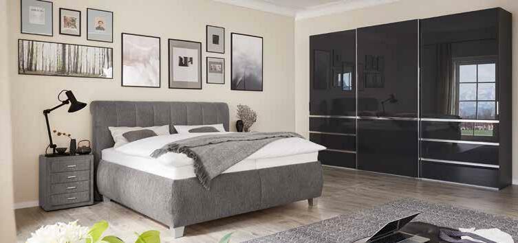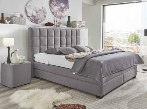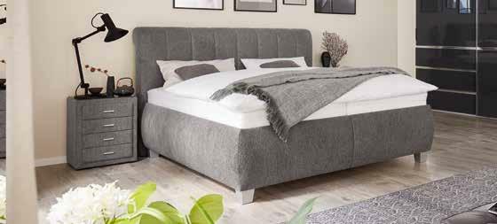 in Stoffbezug grau, LF ca. 160x200 cm, Liegehöhe ca. 68 cm, ausgestattet mit stabilen Lattenrost geeignet bis 200 kg und stützkräf tigen 7 Zonen Tonnentaschenfederkernmatratzen in 3 Härten, inkl. geräumigen Bettkasten. In LF ca. 180x200 cm *statt 3.276.- 1.699.- Nachtkonsolen, Lampen, Kissen, Plaid, andere Stoffe, Größen und Zusammenstellungen gegen Mehrpreis erhältlich.