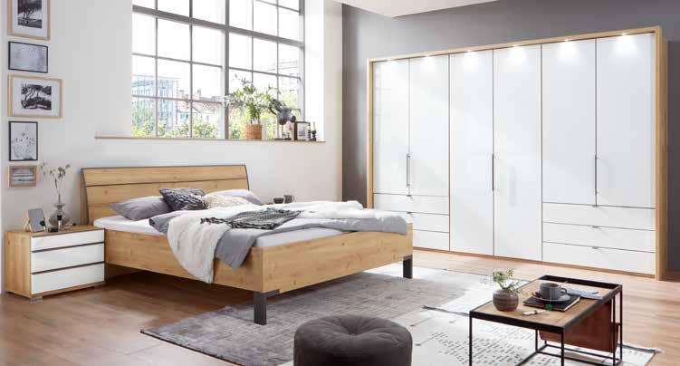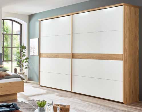 Modernes Schlafzimmer in Eiche NB alpinweiß. Drehtürenschrank, 5-trg., ohne Laden, ca. 250x223x60 cm *statt 1.074.- 599.- Drehtürenschrank, 6-trg., ohne Laden, ca. 300x223x60 cm *statt 1.191.- 699.Drehtürenschrank, 6-trg., mit Laden *statt 1.461.- 999.- BETTANLAGE , LF ca. 180x200 cm, inkl. Bettschubkästen, Beleuchtung und Hängenachtkonsolen. Passepartout, und Beleuchtung gegen Mehrpreis. Beimöbel, andere Größen und Zusammenstellungen zum individuellen Preis.