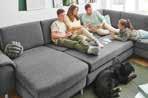 Katzen und Hunde werden wie ein Familienmitglied geliebt und verwöhnt. Mensch und Tier teilen sich gerne den Alltag und verbringen so manche Kuschelstunde auf dem Sofa. Wer sichergehen möchte, dass sich Tier und Sofa auf Dauer vertragen, wählt beim Sofakauf einen haustierfreundlichen Stoff. Wir empfehlen: WOW, der neue Stoff für echte Tierliebhaber. Gut zu Mensch, Tier und Couch.