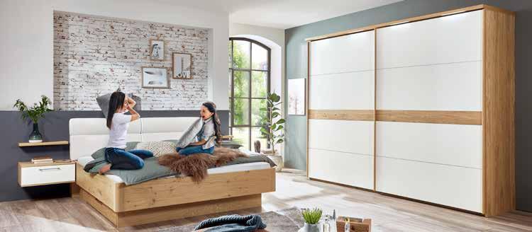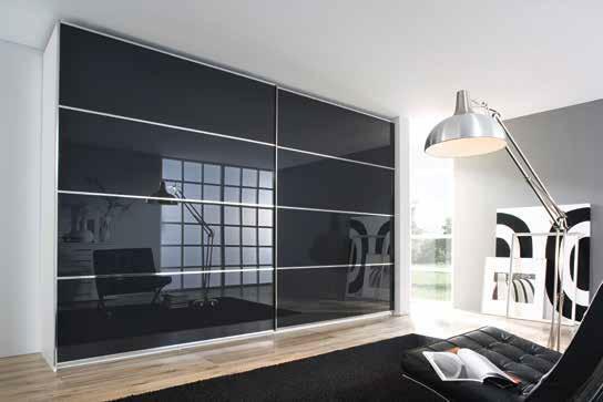 Planungsprogramm mit grenzenlosen Möglichkeiten. Wählen Sie aus 9 Frontgläsern und Spiegel sowie aus 10 Korpus- und Frontdekoren. Passende Betten und Beimöbel runden das Programm ab.