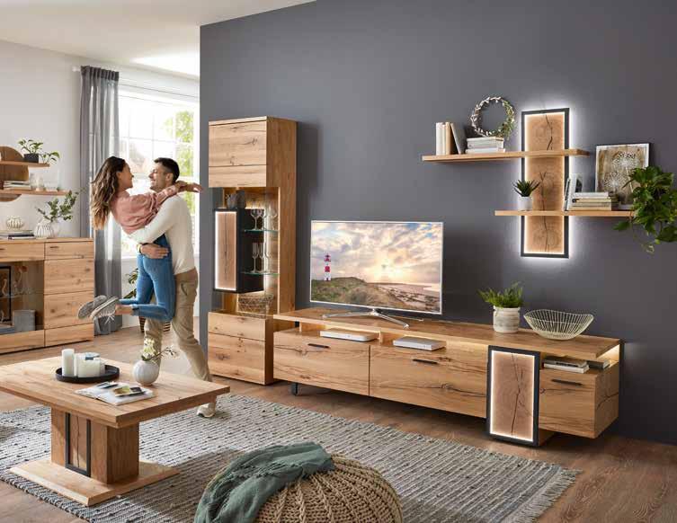 Holzfurniere (Abdeckblatt, Wandboard, Rahmen und TV-Blende):