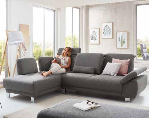 Moderne WOHNLANDSCHAFT, Stoffbezug wow-grey, Metallfuß, Sitzkomfort: soft, ca. 195x345x160 cm. Armteil klappbar, Rücken echt, Querschläfer, Stauraum, Kopfstütze, andere Farben und Zusammenstellungen zum individuellen Preis erhältlich.