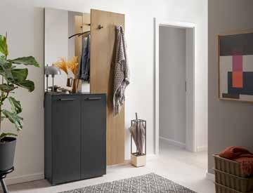Kompakte GARDEROBE in Wildeiche und anthrazit Lack, B/H/T: ca. 98x190x72 cm, bestehend aus: Schuhschrank, Spiegel und Paneel. 799.-