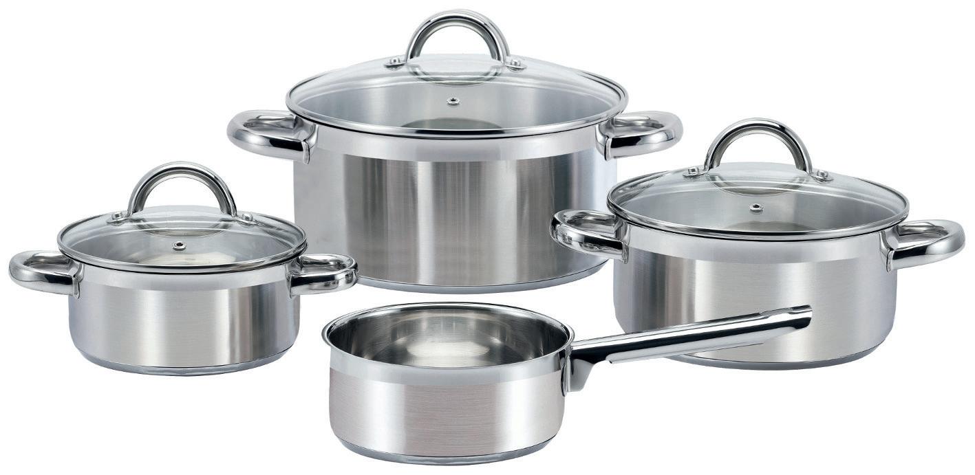 Hochwertiges KOCHTOPFSET, 7-tlg., Edelstahl, best. aus: Kochtopf Ø 16, 20 und 24 cm mit je 1 Glasdeckel und Kasserolle Ø 16 cm induktions- und spülmaschinengeeignet. Induktion * statt 1.228.399.-67%