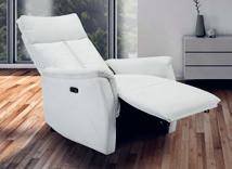 Moderner TV-SESSEL in Stoffbezug Lederoptik weiß, 1-motorisch mit Relaxfunktion per Knopfdruck, inkl. USB-Anschluß, B/H/T: ca. 96x162x106 cm, max. 120 kg.