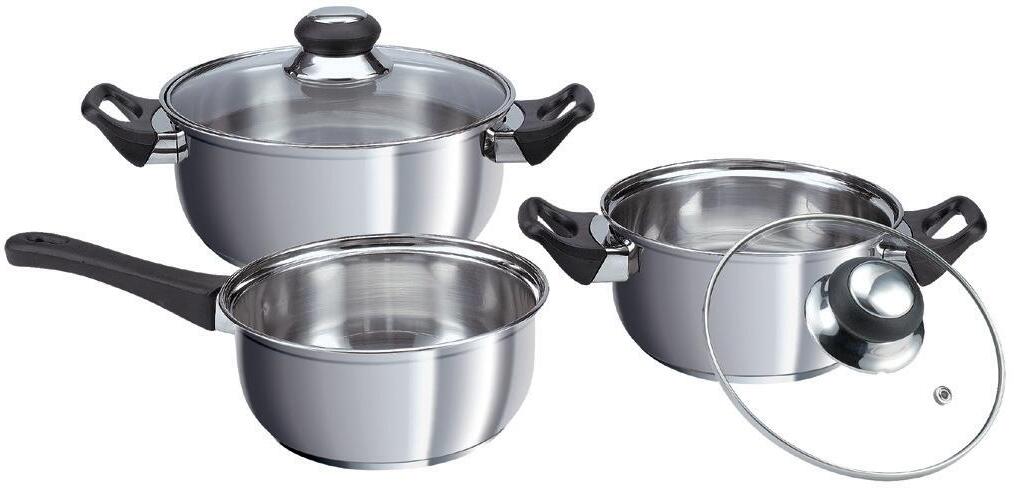 Hochwertiges KOCHTOPFSET, 7-tlg., Edelstahl, best. aus: Kochtopf Ø 16, 20 und 24 cm mit je 1 Glasdeckel und Kasserolle Ø 16 cm induktions- und spülmaschinengeeignet. Induktion * statt 1.228.399.-67%