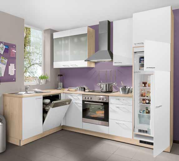 ca. 225x255+150 cm inkl. Elektrogeräte-Set und Einbauspüle. Geschirrspüler, Hocker, Relingset, Beleuchtung und Armatur gegen Mehrpreis. Andere Größen, Farben und Zusammenstellungen zum individuellen Preis planbar.