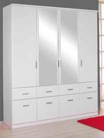 DREHTÜRENSCHRANK, 4-trg., alpinweiß mit 2 Spiegeltüren und 8 Schubkästen, B/H/T: ca. 181x199x56 cm.
