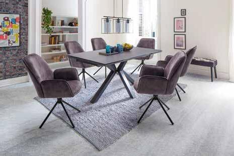 Essgruppe, ausziehbar, Platte Keramik Sicherheitsglas anthrazit lackiert, Gestell Metall schwarz matt lackiert, ca. 160(240)x90 cm